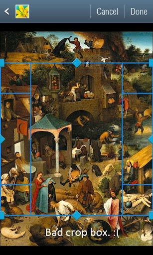 بعد تحديث جيلي بين (اندرويد 4.1) اصبح عدم الامكان اضافة خلفية من دون اقتصاص جزء منها ، ما يسبب فقدان جودة الخلفية. صورة توضح المشكلة :
